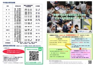 焼津中央高校の矢追さんが中心となって活動している、科学好きの生徒の裾野を広げるための事業です。生徒、教師、共に参加できる会です。 詳細はこちら → 2023中高大連携授業実施要項 2023中高大連携授業 […]