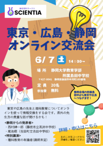 申し込み(〆5月31日(土)) → https://forms.office.com/r/KhWgfcJedL 日時 6月7日(土)14:00-17:00 場所 静岡大学教育学部附属島田中学校 対象 藤枝・島田・焼津を中 […]