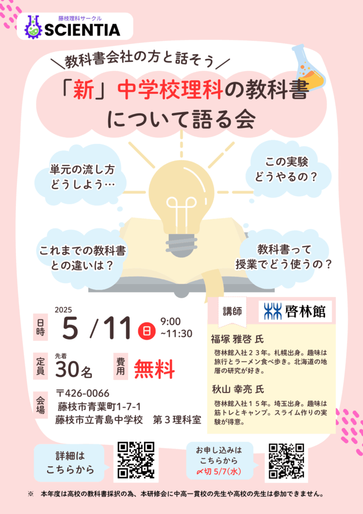 「新 中学校理科の教科書について語る会」兼 108回例会開催(おしらせ)