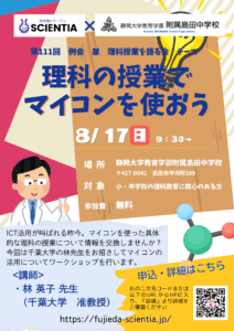 申し込み(〆8月10日(日)) → https://forms.office.com/r/CGWdk5bCTt 日時 8月17日(日)9:30-12:00 場所 静岡大学教育学部附属島田中学校 対象 藤枝・島田・焼津を中 […]